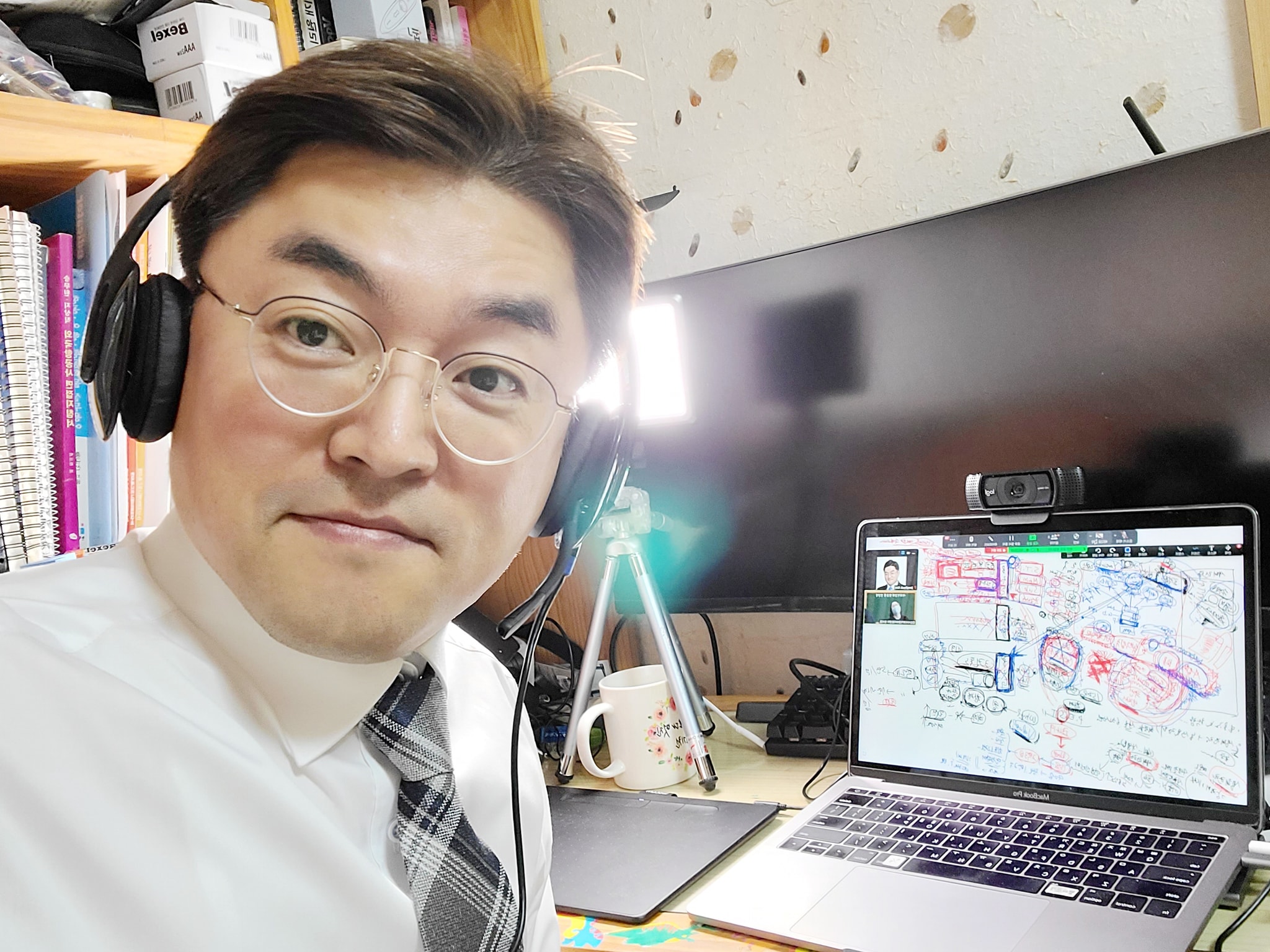조명, 로지텍 웹캠, 헤드셋, 와콤 타블렛으로 구성한 휴대용 패키지로 진행했는데 컨설팅에도 효과적이네요. 즐거운 추석되세요^^~~~♡