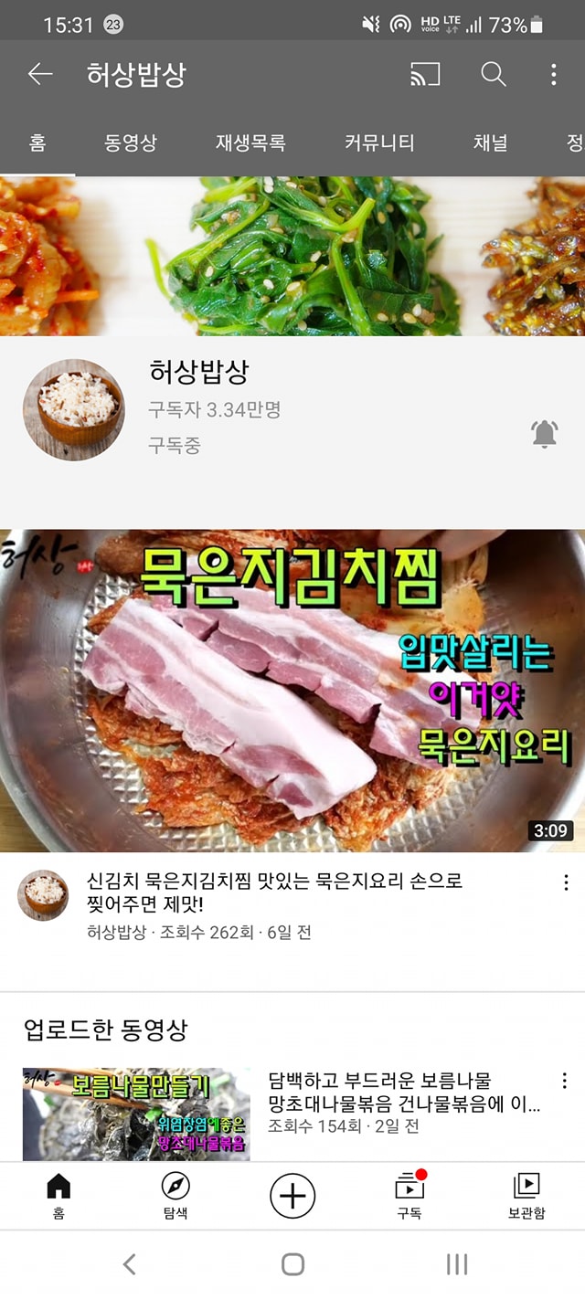 강의중에 한분께서 유튜브 채널을 운영하신다기에 구독자를 여쭤봤는데 3만3천명이 넘는다고 하셔서 깜짝 놀랐습니다. 밥상! 요리법!에 대한 정보를 제공하신다고 합니다. 와... 놀랐습니다. '허상밥상' 강추합니다~~~♡ 즐거운 연휴되세요~~~☆