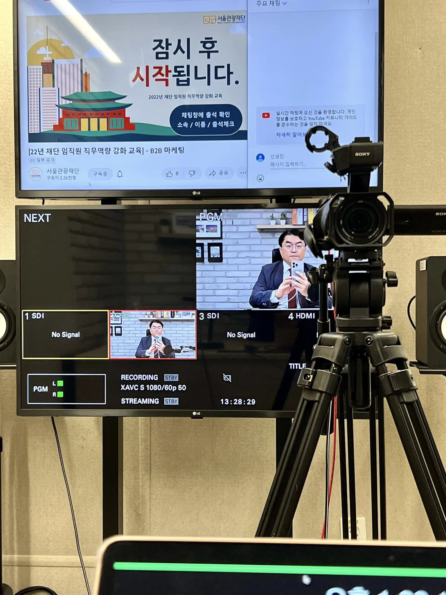 오늘은 서울 종로에 위치한 '서울관광재단'에서 마케팅담당 임직원분들을 대상으로 'B2B마케팅'에 대한 특강을 유튜브 실시간 방송으로 진행했습니다. 줌과 달리 약간의 시간차가 생기네요. 그래도 체팅창으로 소통하며 진행하니 좋았습니다. 스튜디오 너무 좋은데요. 저도 이사가면 방을 이렇게 만들어야겠습니다 ^^b