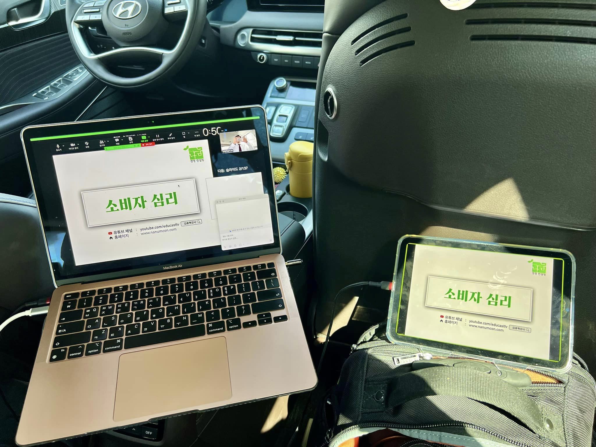 오늘 용인의 써닝리더십센터 주차장에서는 차 안의 작은 공간을 이용해 BGF 편의점 점주님들을 위한 '2024년 소비자 심리'에 대한 온라인 특강을 진행했습니다. 교육 시작 전, 온라인 시스템의 원활한 운영에 대한 우려가 있었으나, 다행히도 큰 문제 없이 세션이 잘 진행되었습니다. 점주님들의 적극적인 참여와 관심 덕분에 더욱 의미 있는 시간이 되었습니다. 차 안에서 진행된 이번 교육이 소비자 심리에 대한 깊은 이해와 향후 비즈니스 전략 수립에 도움이 되었기를 바랍니다. 참여해 주신 모든 분께 감사드립니다!