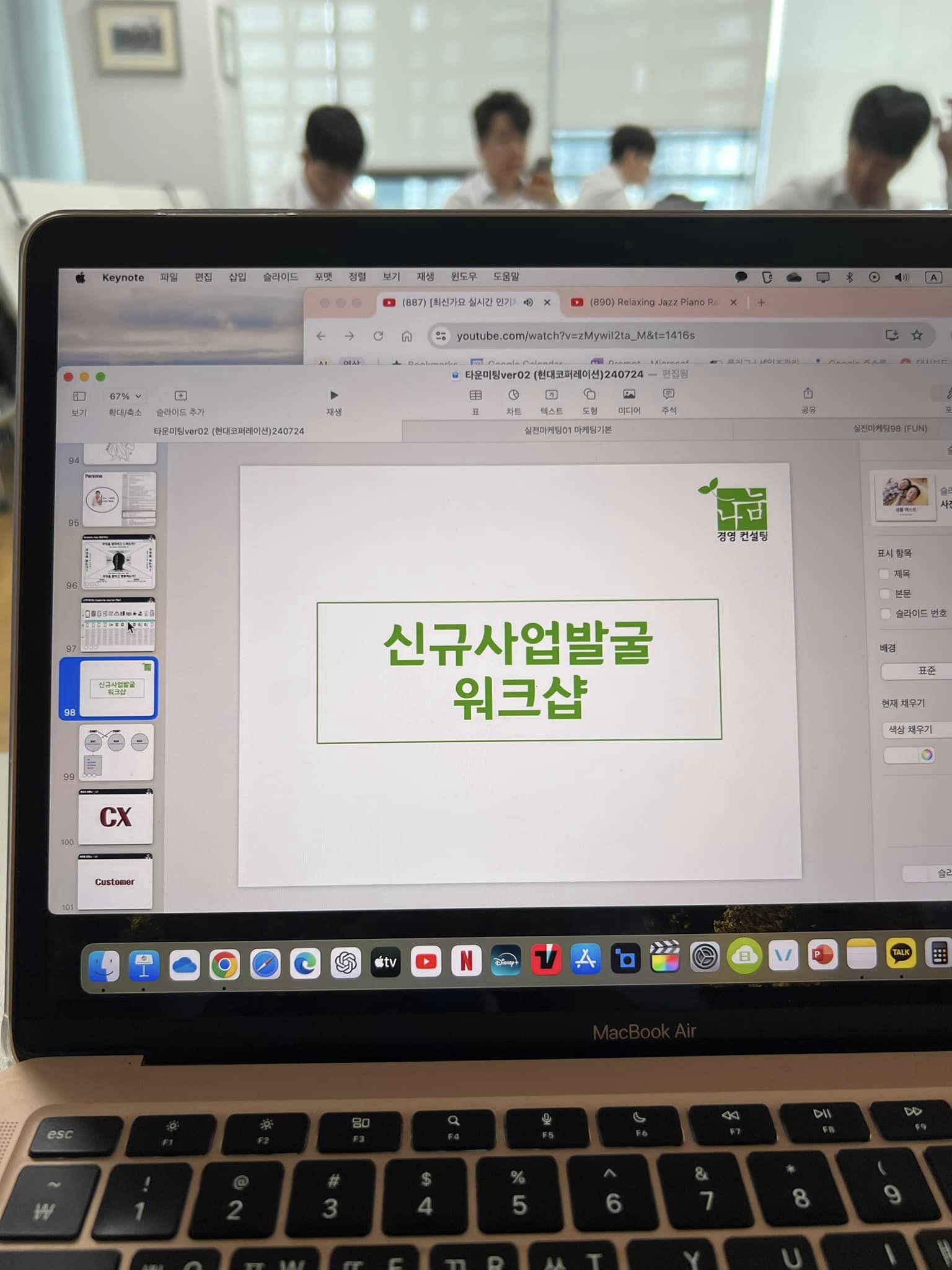 오늘은 아침 8시부터 서울 종로에 위치한 현대코퍼레이션 본사에서 신입사원분들과 함께 '신규사업 아이디어 도출 워크샵'을 진행했습니다. 신입사원들의 참신하고 창의적인 아이디어가 정말 많아 매우 인상적이었습니다. 저는 여러 사례와 방법을 통해 인사이트를 제공하기 위해 노력했습니다. 신입사원분들의 체력과 퍼포먼스가 뛰어나서 워크샵 진행 속도가 매우 빨랐습니다. 덕분에 많은 내용을 효과적으로 다룰 수 있었습니다. 많은 분들께서 ‘정말 유익하고 도움이 되는 시간이었다’는 긍정적인 피드백을 주셨습니다. 워크샵이 끝난 후, 인사를 드리며 나가는데 다들 박수를 쳐주셔서 정말 감사했습니다. 앞으로도 이러한 워크샵을 통해 더 많은 분들과 유익한 시간을 보낼 수 있기를 기대합니다. 감사합니다.