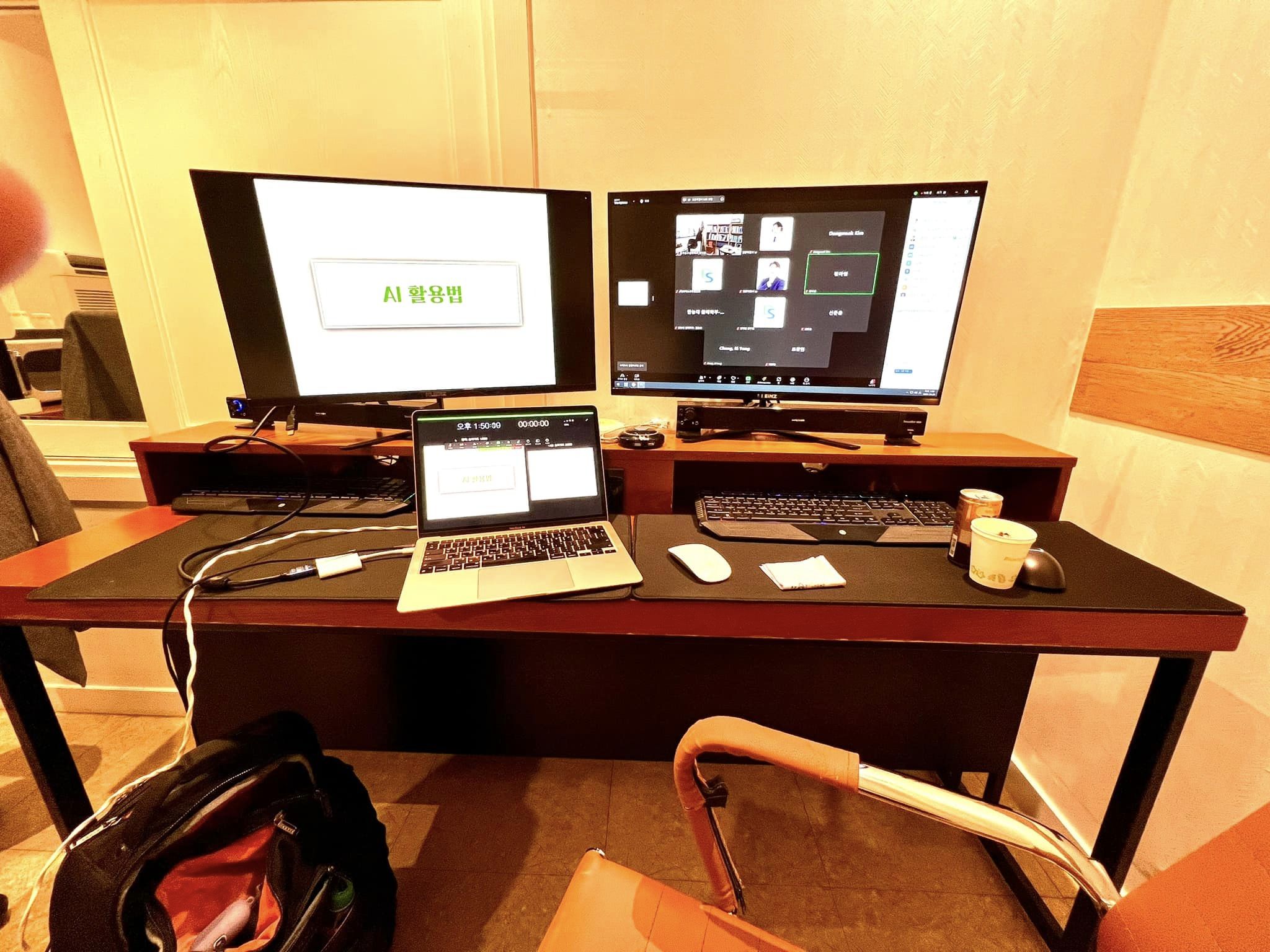 오늘은 바쁜 일정 속에서 특별한 경험을 나눴습니다. 오전 강의를 마치고 근처 숙소로 이동해 짧은 점심 시간을 활용해 세팅을 마친 후, ‘한국 농수산대학교’ 교수님들을 대상으로 ‘AI 도구를 활용해 교육자료 만들기’ 특강을 진행했습니다. 이번 강의는 기존의 이론적인 설명을 최대한 줄이고, 교수님들께서 실제로 만들어야 할 자료 컨셉을 받는 방식으로 구성했습니다. 현장에서 즉시 몇 가지 AI 도구를 활용해 개요를 잡고, 글을 쓰고, 그림을 그리고, 강의자료를 완성해 나가는 과정을 그대로 보여드렸습니다. 빠르고 효율적인 작업 방식에 교수님들이 깊은 인상을 받으신 듯했습니다. 물론, 강행군 끝에 찾아오는 졸음은 어쩔 수 없네요. ^^b